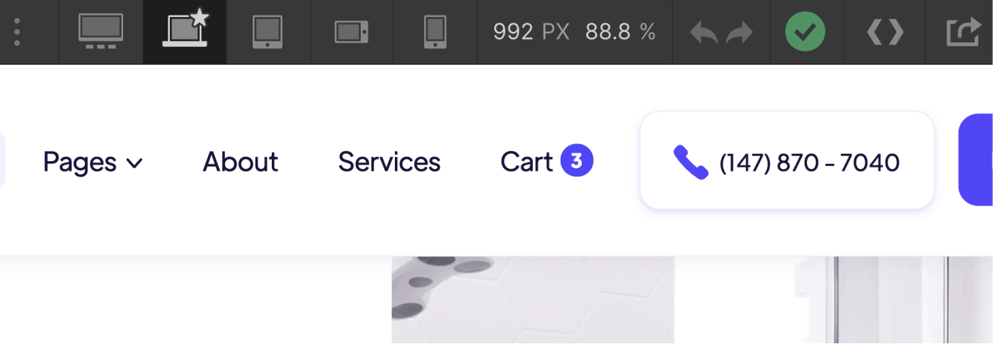 Everytime you make a change (for example, you create a new section design), it's a good practice to go to your Viewport top navigation and see how it looks on Tablet and Mobile.